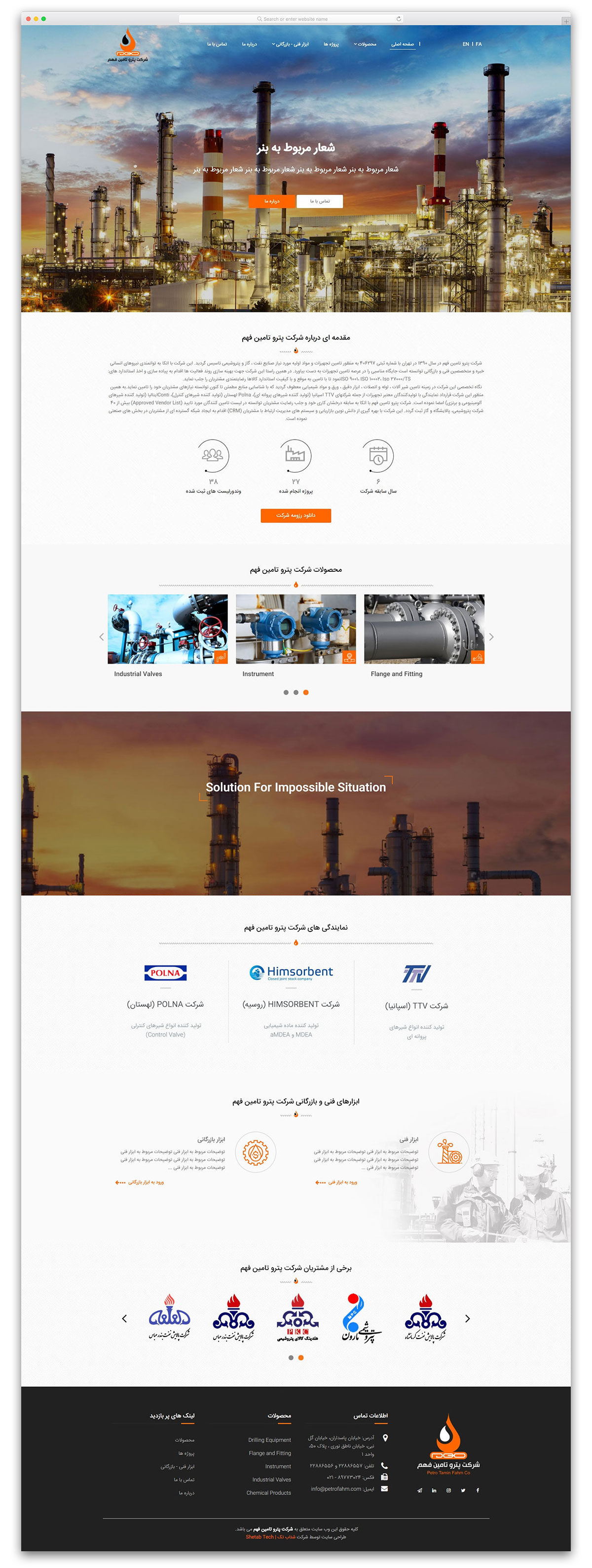 شرکت پترو تامین فهم در سال 1390 در تهران با شماره ثبتی 406297 به منظور تامین تجهیزات و مواد اولیه مورد نیاز صنایع نفت ، گاز و پتروشیمی تاسیس گردید. این شرکت با اتکا به توانمندی نیروهای انسانی خبره و متخصصین فنی و بازرگانی توانسته است جایگاه مناسبی را در عرصه تامین تجهیزات به دست بیاورد. در همین راستا این شرکت جهت بهینه سازی روند فعالیت ها اقدام به پیاده سازی و اخذ استاندارد های: ISO 9001، ISO 10002، Iso 27000/TSنمود تا با تامین به موقع و با کیفیت استاندارد کالاها رضایتمندی مشتریان را جلب نماید. نگاه تخصصی این شرکت در زمینه تامین شیر آلات ، لوله و اتصلات ، ابزار دقیق ، ورق و مواد شیمیایی معطوف گردید که با شناسایی منابع مطمئن تا کنون توانسته نیازهای مشتریان خود را تامین نماید.به همین منظور این شرکت قرارداد نمایندگی با تولیدکنندگان معتبر تجهیزات از جمله شرکتهای TTV اسپانیا (تولید کننده شیرهای پروانه ای)، Polna لهستان (تولید کننده شیرهای کنترل)، Contiایتالیا (تولید کننده شیرهای آلومینیومی و برنزی) امضا نموده است. شرکت پترو تامین فهم با اتکا به سابقه درخشان کاری خود و جلب رضایت مشتریان توانسته در لیست تامین کنندگان مورد تایید (Approved Vendor List) بیش از 40 شرکت پتروشیمی، پالایشگاه و گاز ثبت گردد. این شرکت با بهره گیری از دانش نوین بازاریابی و سیستم های مدیریت ارتباط با مشتریان (CRM) اقدام به ایجاد شبکه گسترده ای از مشتریان در بخش های صنعتی نموده است.
