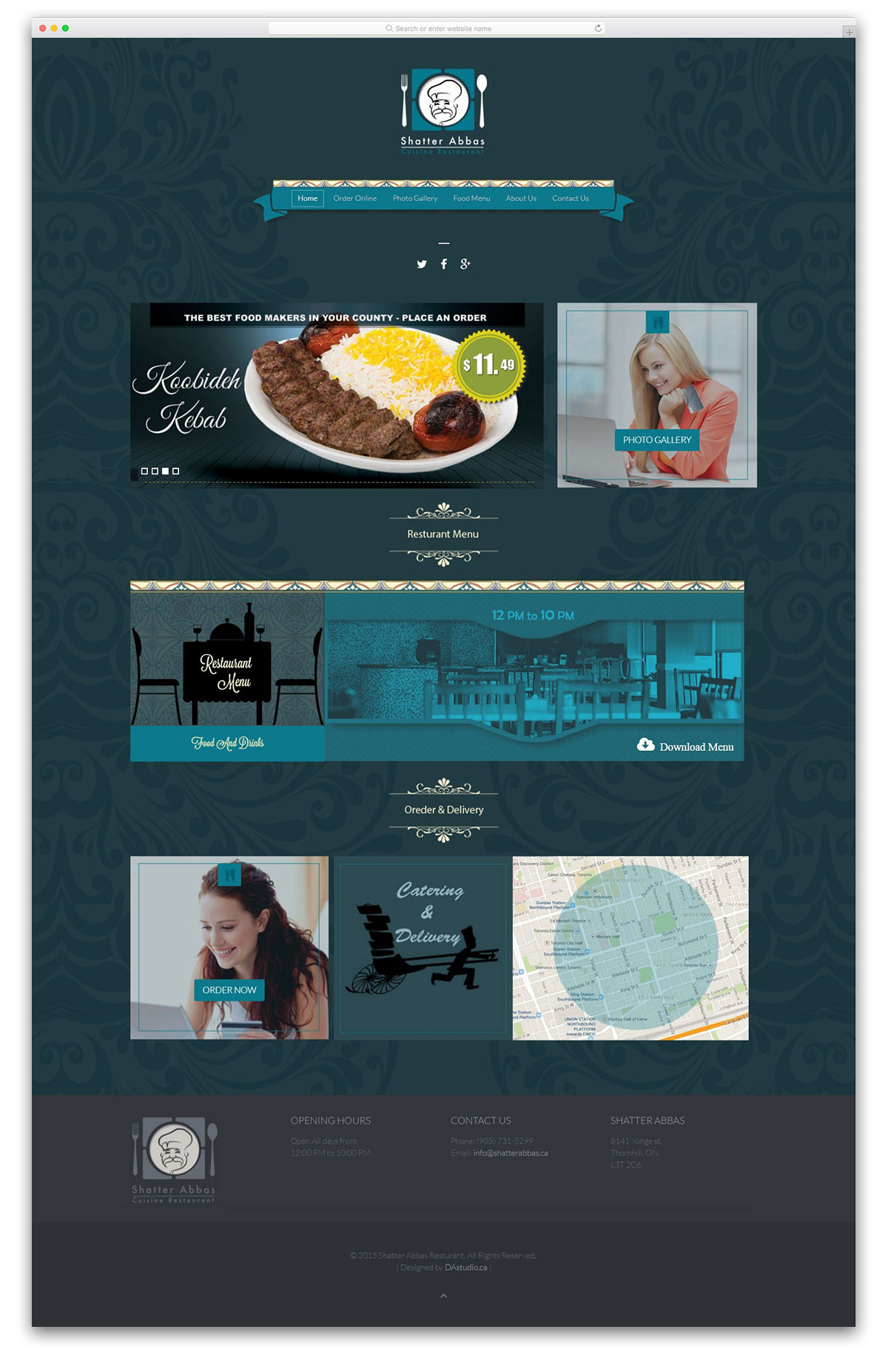 امکانات:واکنش گرا ( Responsive )، فروشگاه آنلاین، امکان امتیازدهی بعد از خرید، منوی آنلاین، نقشه تماس، گالری عکس، فرم تماس
